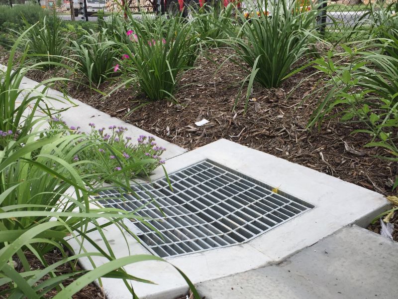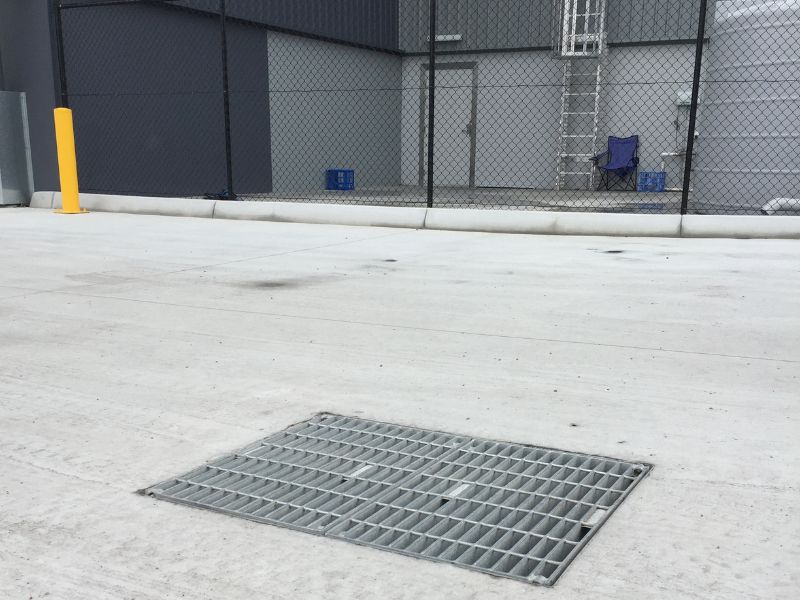 Mascot Engineering grating can be seen throughout the project in all shapes and sizes.  GMS Dome grates in the bio-retention garden, drop in grates under the rainwater tanks, hinged and boltdown grates and frames in trafficable areas and the loading docks as well as V grates in the gardens can be found on site.